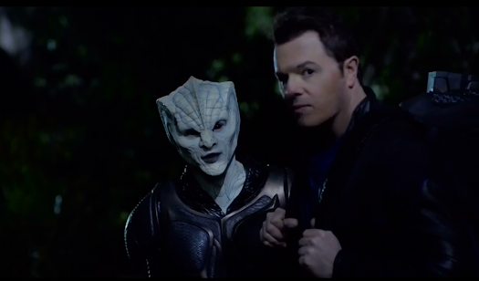 My apologies. I was talking about bad guys, and in that regard, The Orville delivers, not once, but twice. The first set of villains, featured in S1 Ep.1: "Old Wounds", are initially introduced as [SPOILERS!!!] the Planetary Union’s long-term enemies, The Krill, which establishes that they are a threat, but doesn’t flesh-out why this truly is. In fact, their first appearance results in this tense, but still hilarious, repartee between McFarlane’s character and a Krill captain, who is intent on seizing a time-accelerating device, invented by a Union scientist: